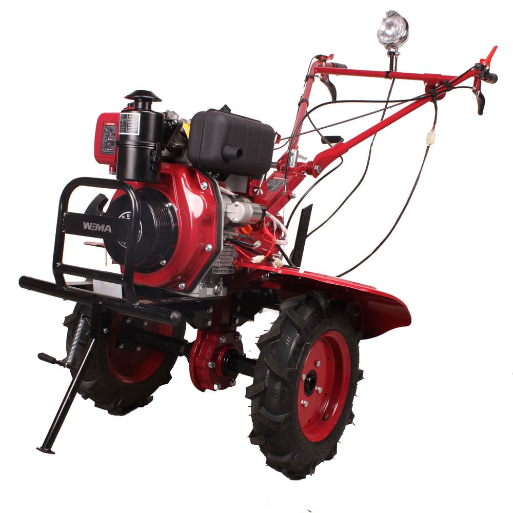 همواره امور مربوط به باغبانی نیازمند تجهیزات و ماشین آلات مخصوص خودش می باشد. یکی از معروفترین ماشین آلات حوزه ی باغی تیلر می باشد. این دستگاه در بازار به اسم تیلر کولتیواتور و یا تیلر روتاری هم مشهور می باشد. تیلرها بر اساس مساحت مورد استفاده و نوع کارکرد با هم متفاوت می باشند. در این بخش به معرفی یک دستگاه تیلر بسیار حرفه ای دیزلی می پردازیم. از مزیت های این تیلر قابلیت حمل و نقل با چرخ های خودش می باشد. این دستگاه ، تیلر کولتیواتور ویما ۷ اسب دیزلی استارتی نام دارد. در بازار با نام های تجاری تیلر ویما WEIMA 1100AE و تیلر کولتیواتور SKN 1100AE نیز شناخته می شود. از مزیت های مهم دستگاه تیلر کولتیواتور ویما WM 1100AE داشتن چرخ و سیستم انتقال گیربکسی می باشد.